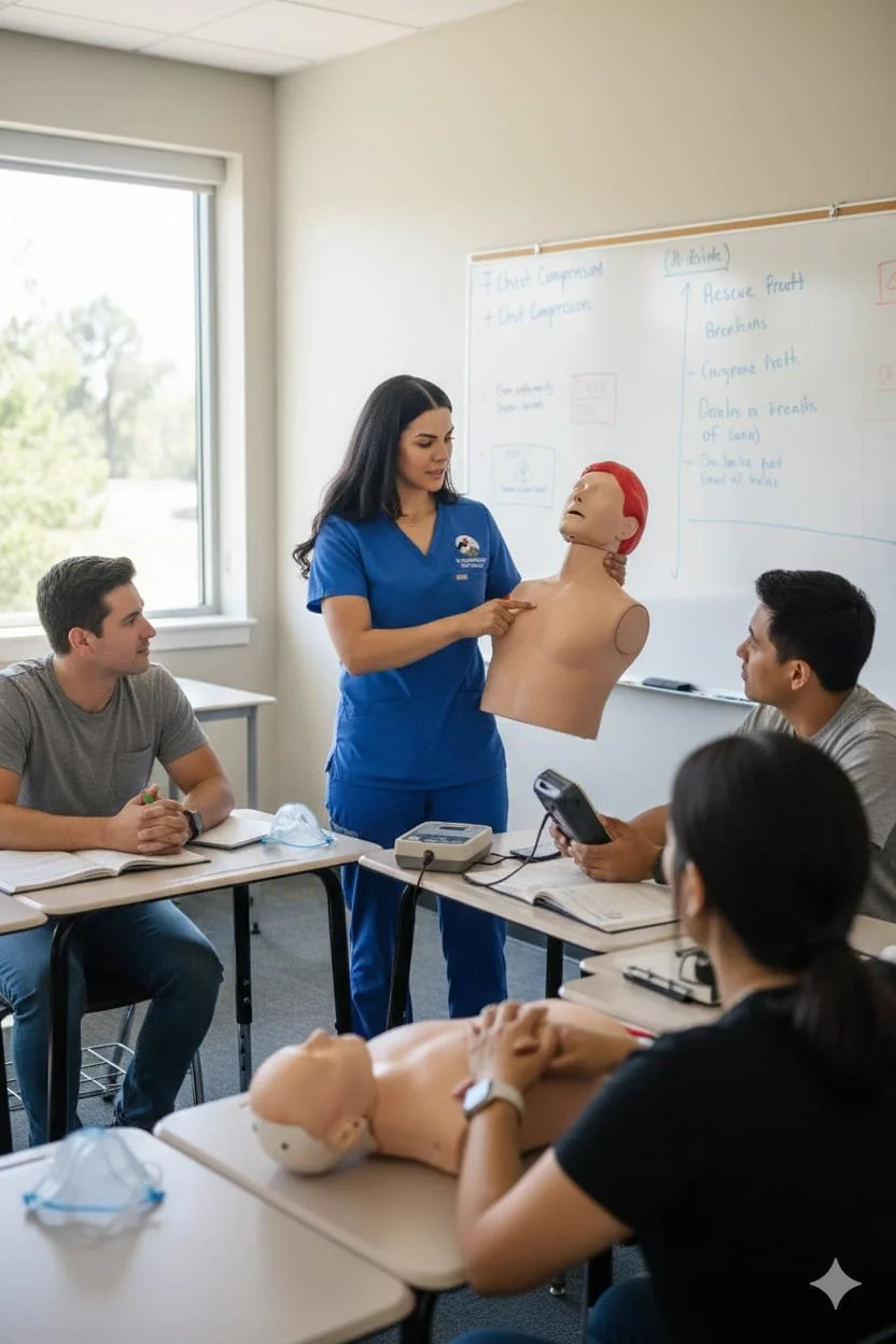 Be prepared to save a life—whether it’s an adult, child, or infant. Our CPR & AED Certification course is designed to give you the knowledge, hands-on skills, and confidence to respond effectively in breathing or cardiac emergencies.
